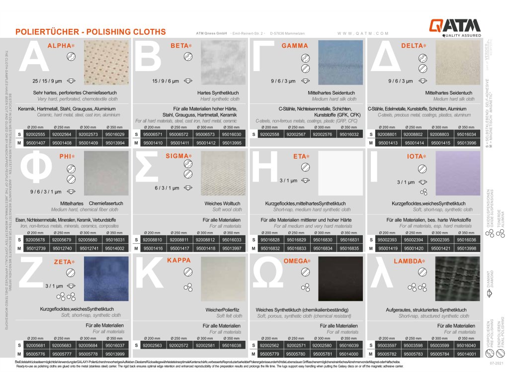 Leštící plátna Galaxy jsou hotova k okamžitému použití na magnetickém čiadhezním disku. Plátna jsou nalepena na nerezovém kotouči pro snadnou a rychlou manipulaci i skladování. Pevný podklad zaručuje optimální odolnost hran výbrusu a zajišťuje delší živostnost plátna i vyšší reprodukovatelnost výsledků preparace. Výstupky na kotouči zajišťují snadnou manipulaci při umístění pláten na nebo z pracovního disku.